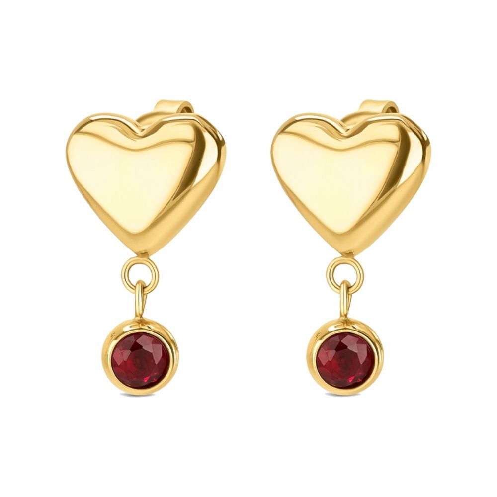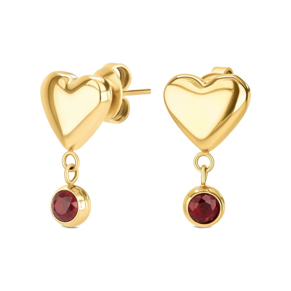Os Brincos Spark apresentam um design delicado e feminino, compostos por um coração dourado de acabamento liso, que assume o destaque na parte superior da peça. A partir deste elemento suspende-se pendente com um cristal zircónico vermelho redondo, cravado numa base dourada, acrescentando brilho, intensidade e um contraste elegante ao conjunto.
