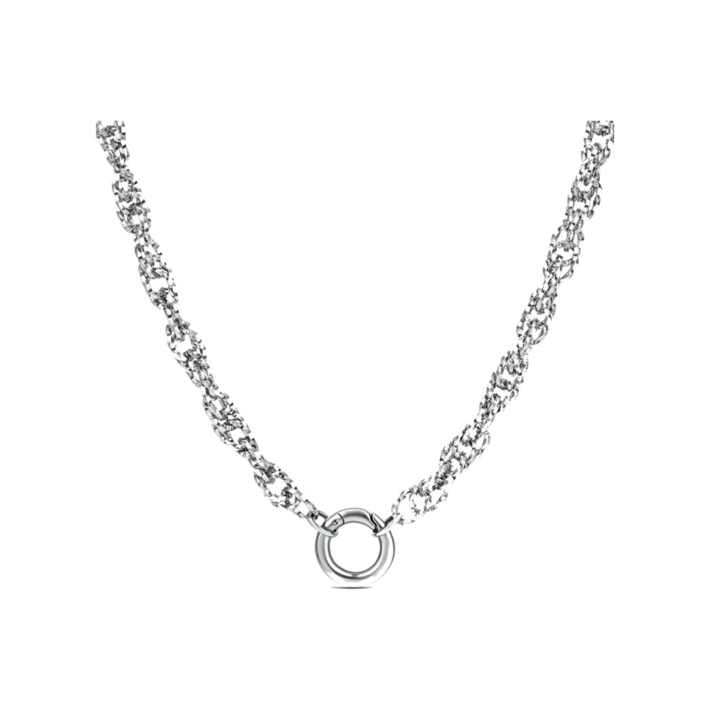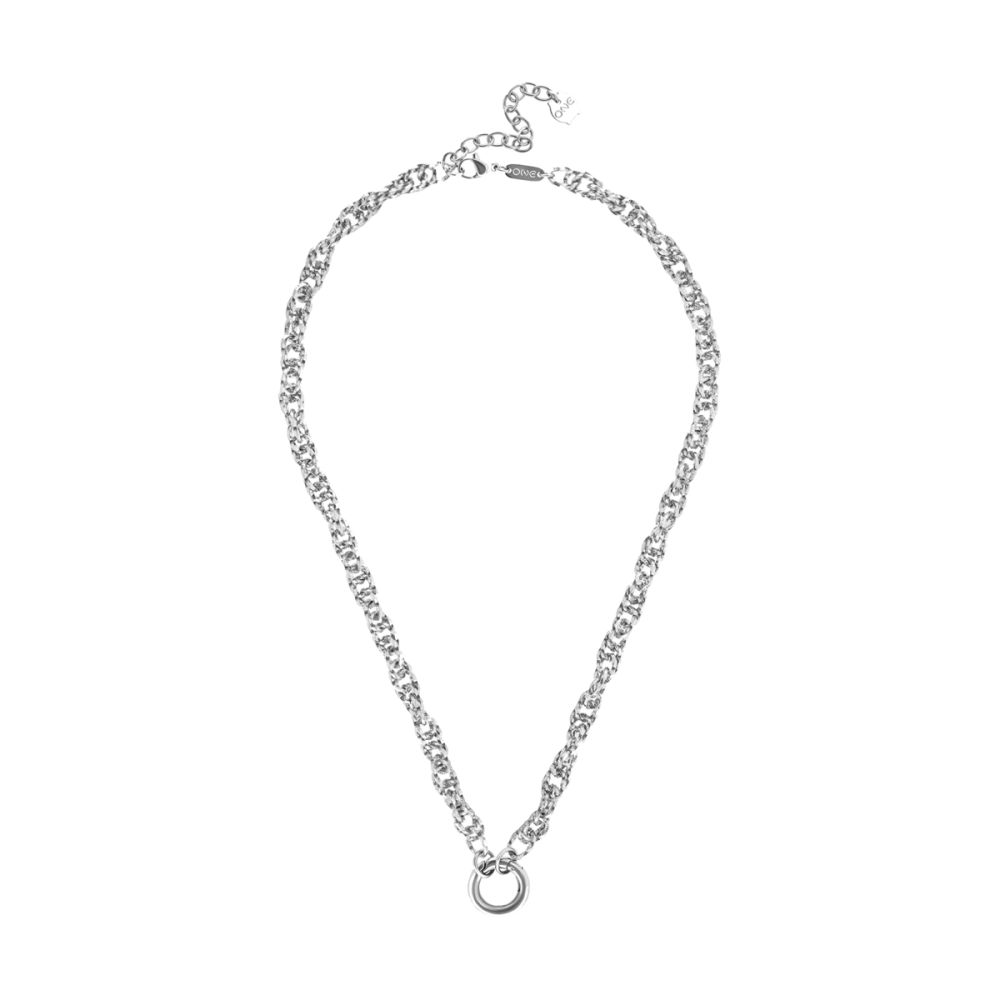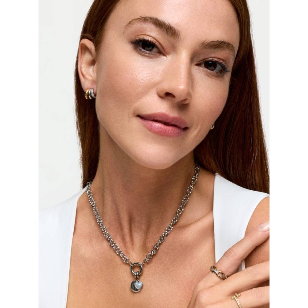 O Colar Master Union é composto por um fio prateado de malha dupla e torcida, que confere textura, fluidez e um visual contemporâneo à peça. O design robusto, mas equilibrado, torna este colar uma base marcante e versátil dentro da coleção Energy for Life. No centro, destaca-se um aro redondo prateado, que funciona como elemento de fecho e ponto focal do colar. Ao contrário de outros colares master Energy, neste modelo Union Double os charmes são aplicados diretamente no aro central, e não ao longo do fio, reforçando o seu carácter funcional e simbólico. Este colar é compatível exclusivamente com charmes pendentes da coleção Energy for Life (não compatível com charmes bond ou stories), permitindo personalizar a peça de forma simples e significativa. Cada charme acrescentado representa uma memória, um momento especial ou uma ligação única, eternizada junto ao peito. Com fecho ajustável para maior conforto e adaptação, o Energy Master Union Double pode ser usado sozinho como peça de destaque ou integrado em composições de layering. Uma peça com identidade forte, pensada para contar histórias e acompanhar diferentes fases e emoções da vida.
