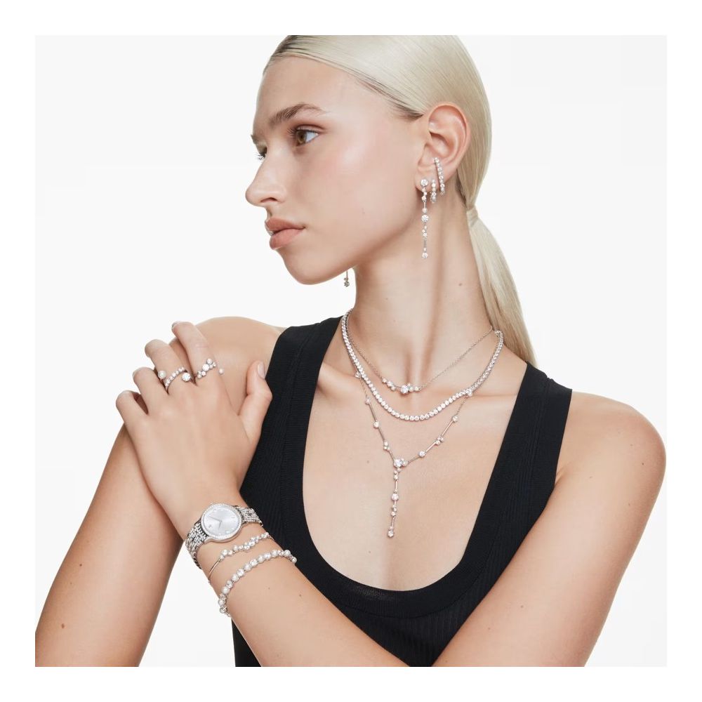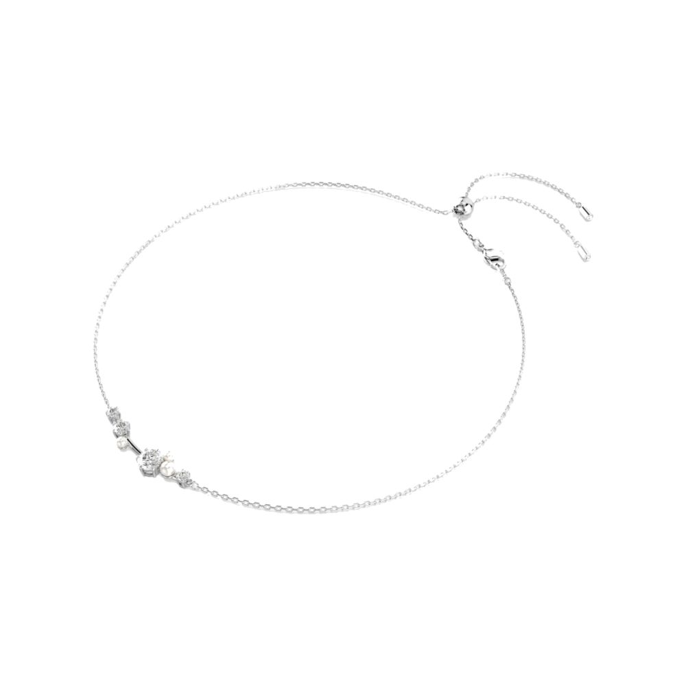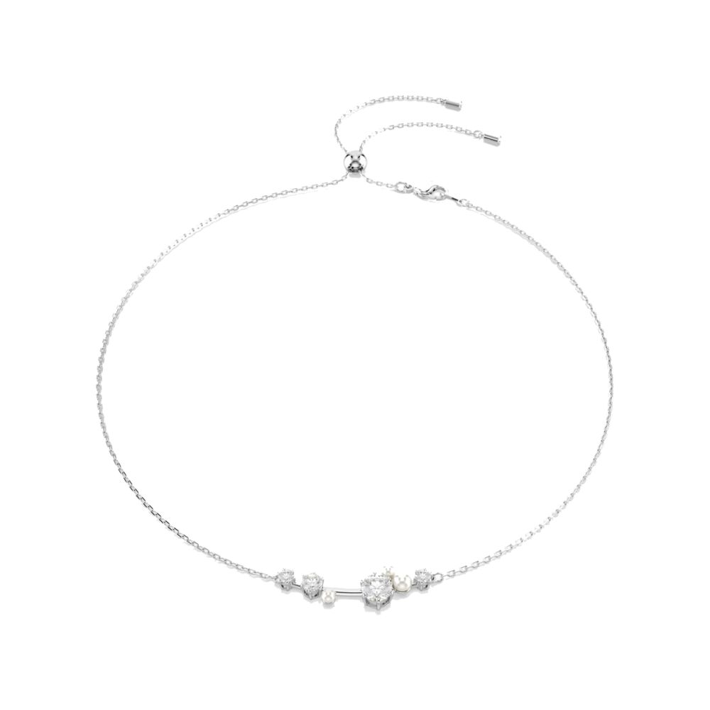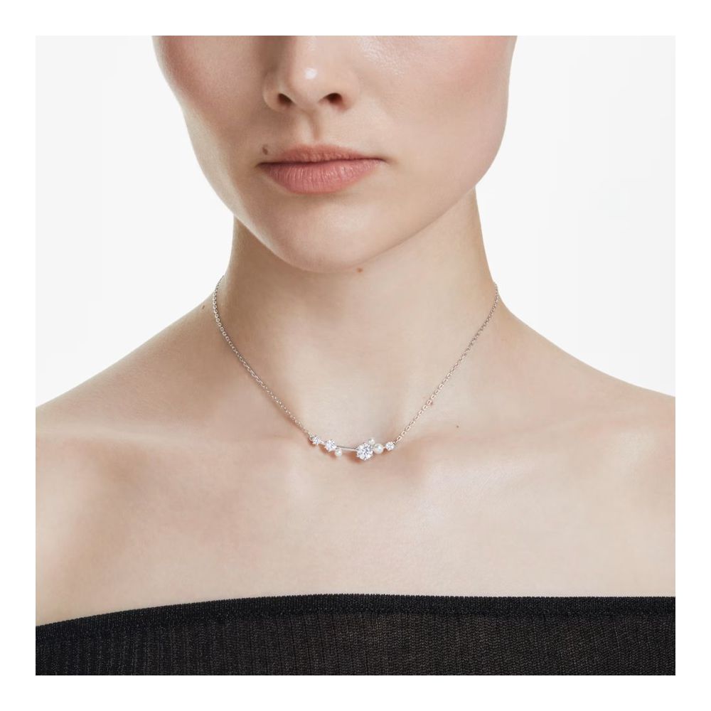 Eleve o seu estilo às estrelas, com esta versátil criação Constella. O design revestido a ródio apresenta um mecanismo de puxar especial, permitindo-lhe que use a peça como colar ou gargantilha. Na parte frontal, os Swarovski Zirconia e as Swarovski Crystal Pearls de tamanhos diferentes parecem quase flutuar entre as discretas articulações, produzindo um visual de maravilha cósmica. Jogue com as diferentes possibilidades de conjugação e use-o em conjunto com um anel a condizer para emitir reflexos de luz infinitos.
