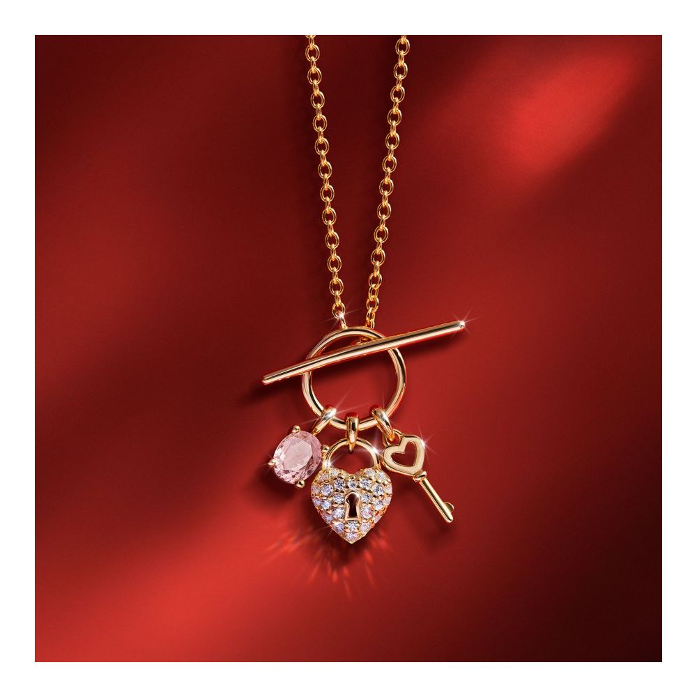 Em prata de lei 925 com banho de ouro, o design destaca um delicado coração com fechadura e chave, símbolo de confiança, entrega e ligação. Um detalhe com significado, pensado para o dia a dia.