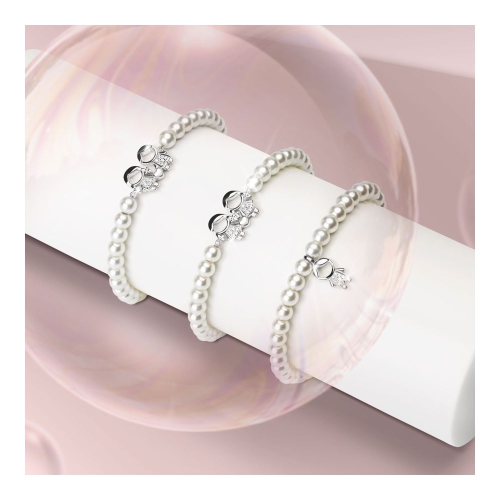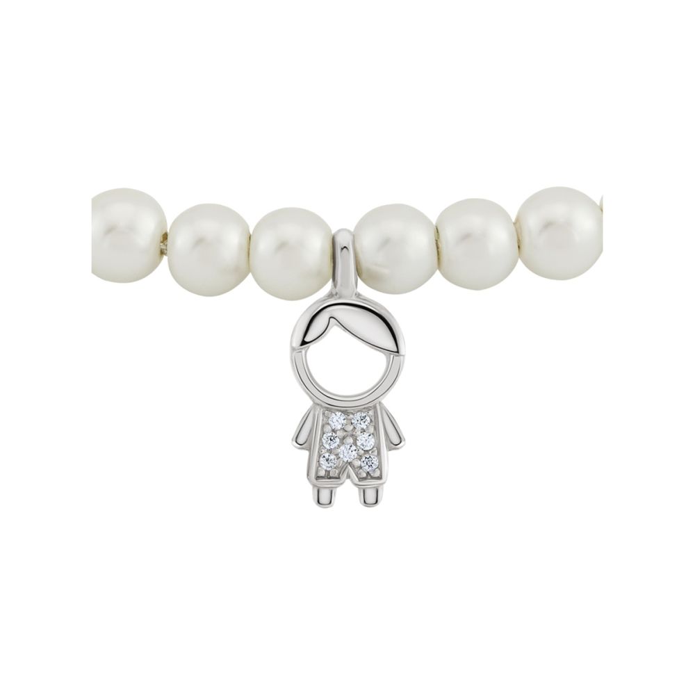A pulseira Mum Boy Pearls, da coleção Mum Pearls, apresenta um design clássico e romântico. Com um pendente em forma de menino, em Prata de Lei 925 com cravação de zircónias brancas, é uma pulseira cheia de significado. Ideal para mães clássicas e que adoram os seus filhos.