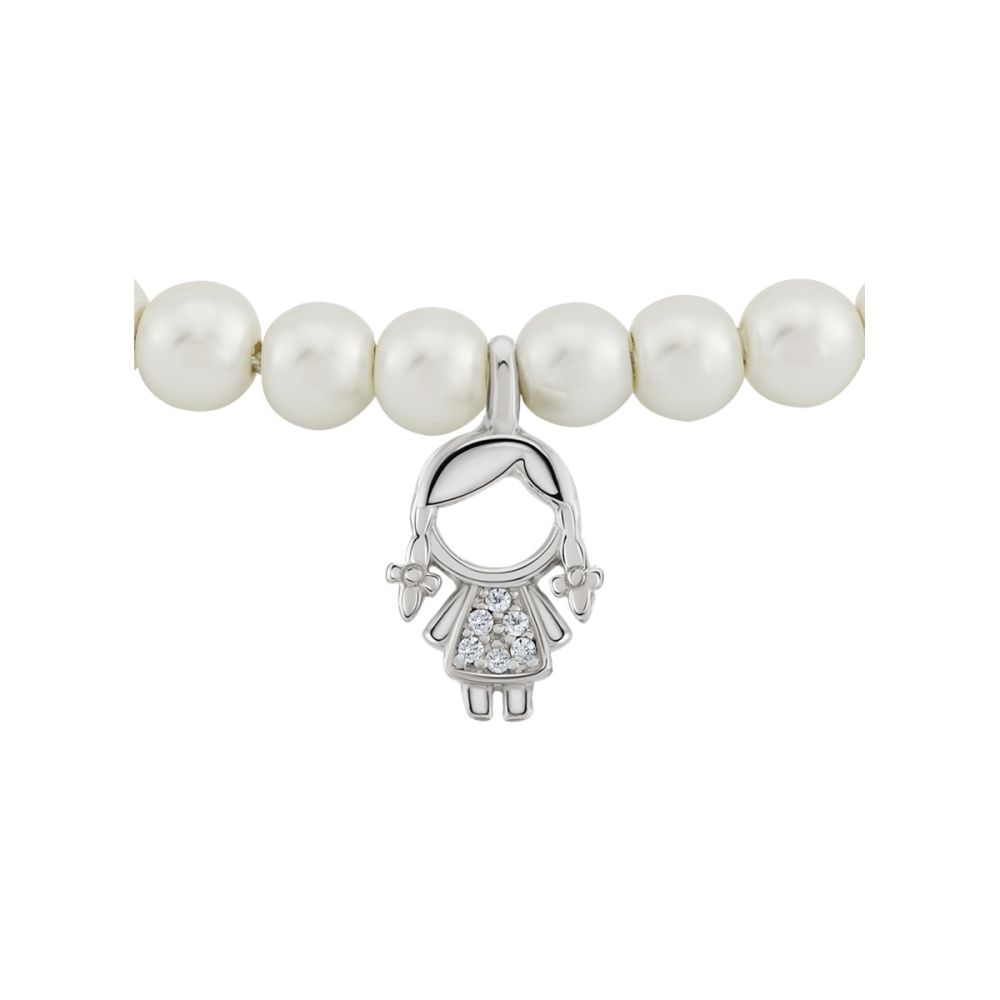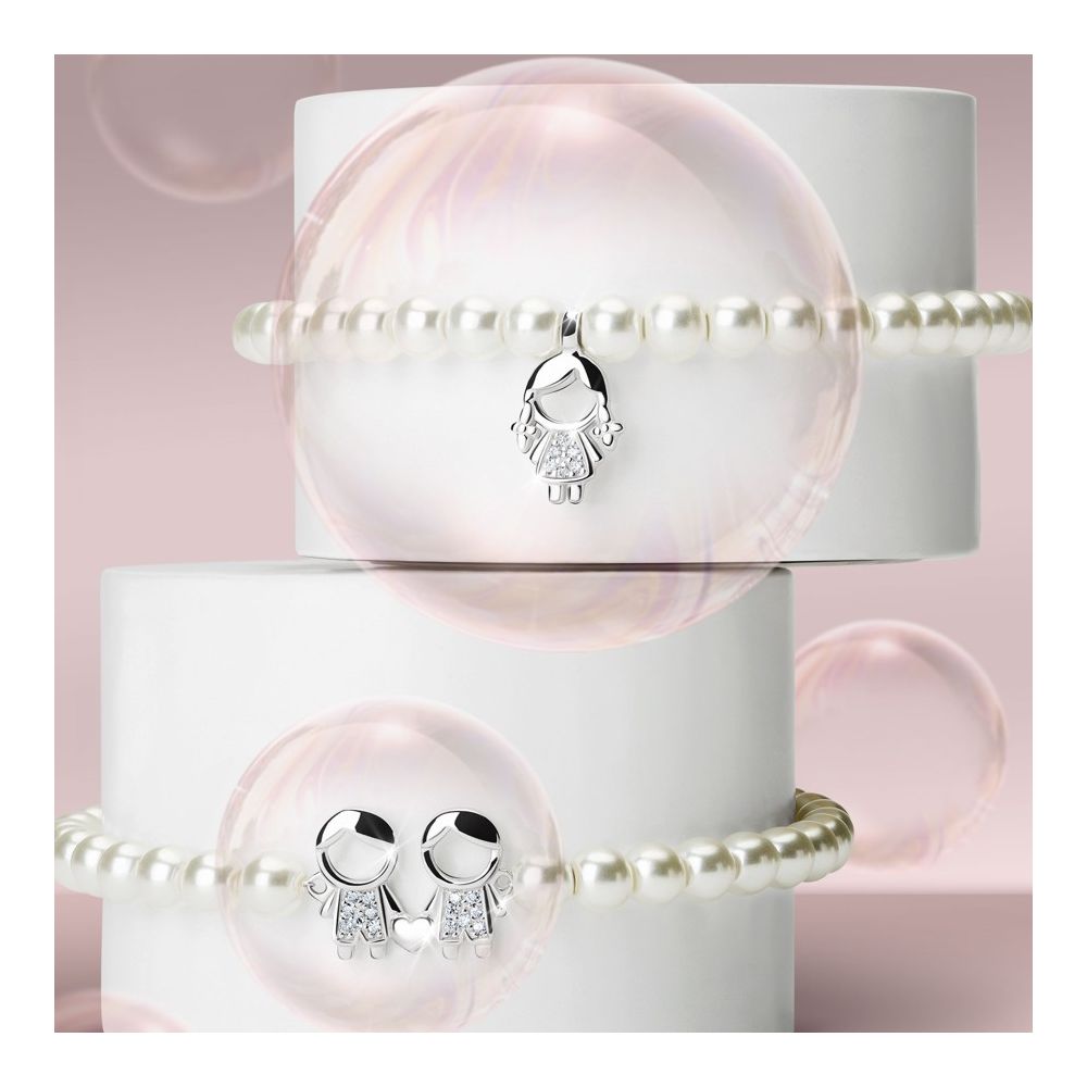 A pulseira Mum Girl Pearls, da coleção Mum Pearls, apresenta um design clássico e romântico. Com um pendente em forma de menina, em Prata de Lei 925 com cravação de zircónias brancas, é uma pulseira cheia de significado. Ideal para mães clássicas e que adoram os seus filhos.