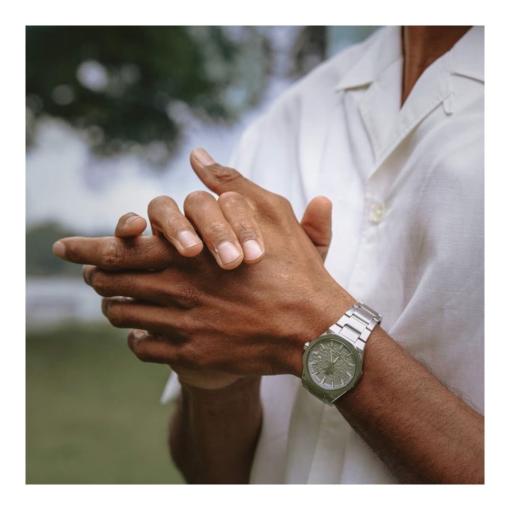 Com uma caixa fina de 7,8 mm, bisel octogonal plano e design clássico de mostrador analógico de três ponteiros, estes relógios projetam um aspeto desportivo e um toque luxuoso.