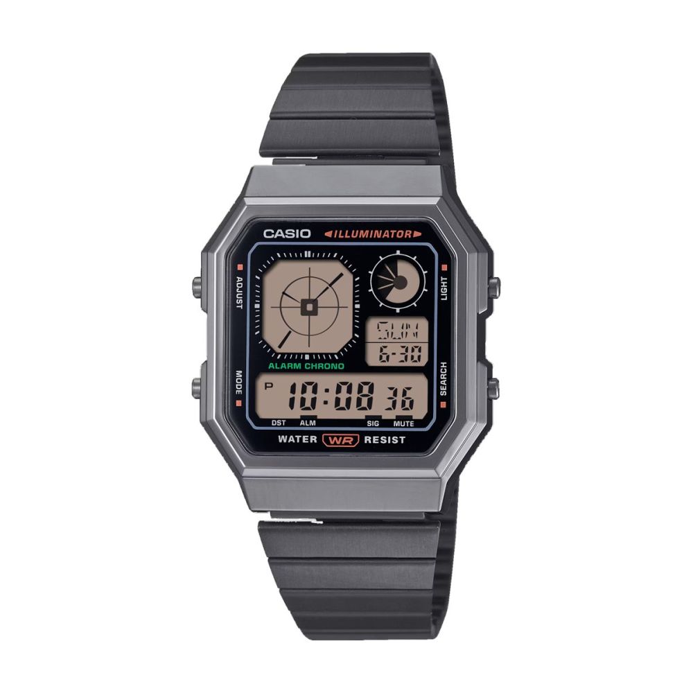Ousadamente eclético e prático, também. Repleto de funções úteis como resistência à água para utilização diária, retroiluminação LED, cronómetro, alarme e muito mais.