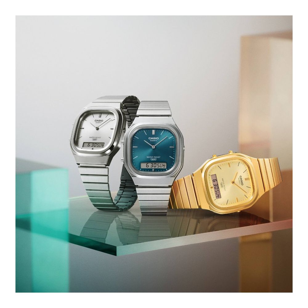 Dê ao seu estilo retro um toque moderno, ou à sua moda contemporânea um toque vintage. Seja como for, o AQ-240E, refinado e fluido, atinge o ponto certo.
