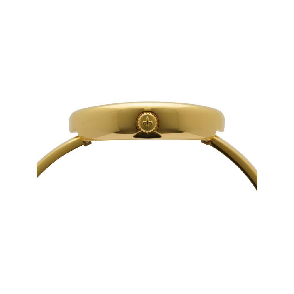 Este relógio Cauny tem uma caixa com diâmetro aproximado de 32 mm, cor dourado e bracelete cor dourada. Está equipado com um movimento de quartzo. O relógio é estanque até 30 m | 3 bar | 3 atm. Composição: aço.