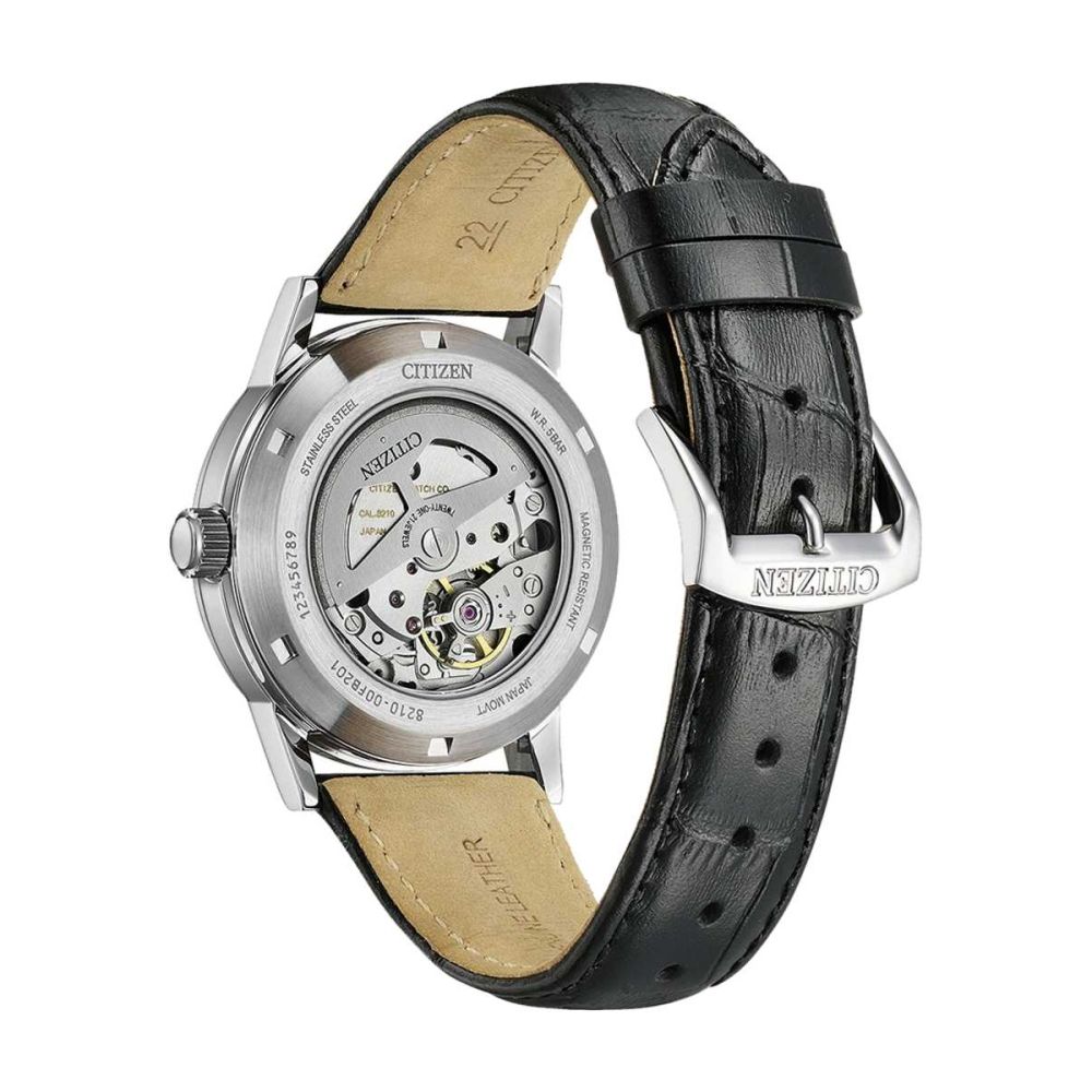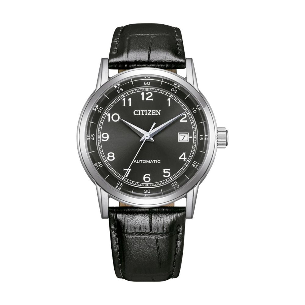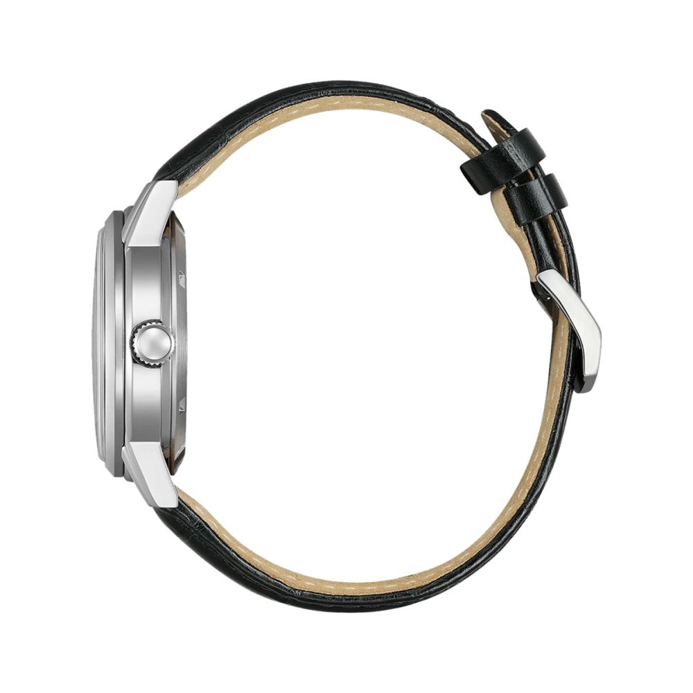 Caixa com diâmetro aproximado de 40 mm, mostrador cor preto, bracelete cor preta e caixa cor prateada. Está equipado com um movimento eco-drive. O relógio é estanque até 50 m | 5 bar | 5 atm. Composição: aço e couro/pele.