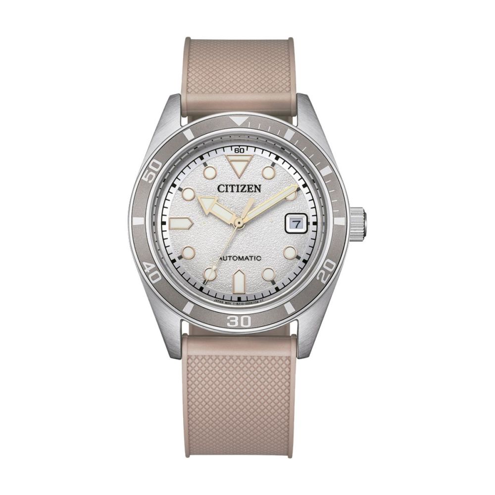 Caixa com diâmetro aproximado de 38,5 mm, mostrador cor bege, bracelete cor rosa e caixa cor prateada. Está equipado com um movimento eco-drive. O relógio é estanque até 50 m | 5 bar | 5 atm. Composição: aço e poliuretano.