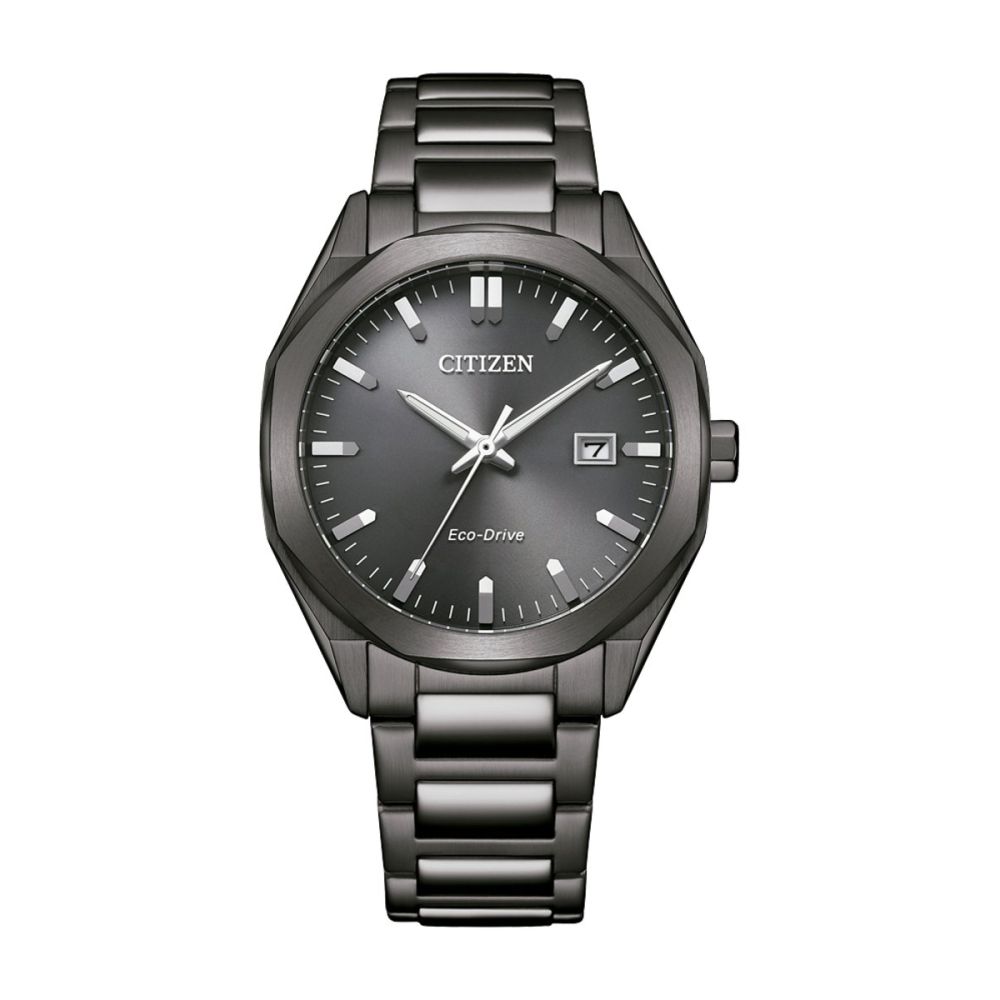Caixa com diâmetro aproximado de 38 mm, mostrador, bracelete e caixa cor preto. Está equipado com um movimento eco-drive. O relógio é estanque até 100 m | 10 bar | 10 atm. Composição: aço.