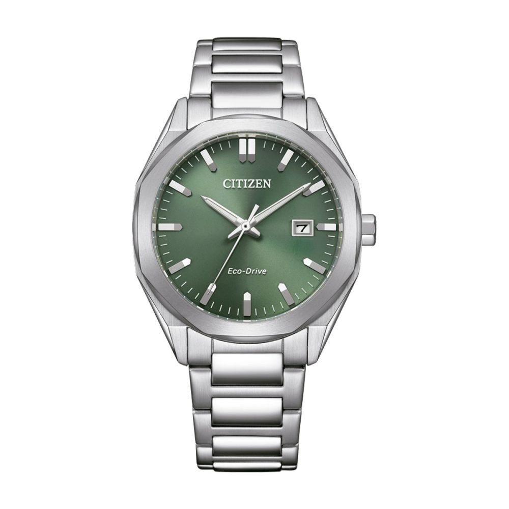 Caixa com diâmetro aproximado de 38 mm, mostrador cor verde e bracelete e caixa cor prateado. Está equipado com um movimento eco-drive. O relógio é estanque até 100 m | 10 bar | 10 atm. Composição: aço.