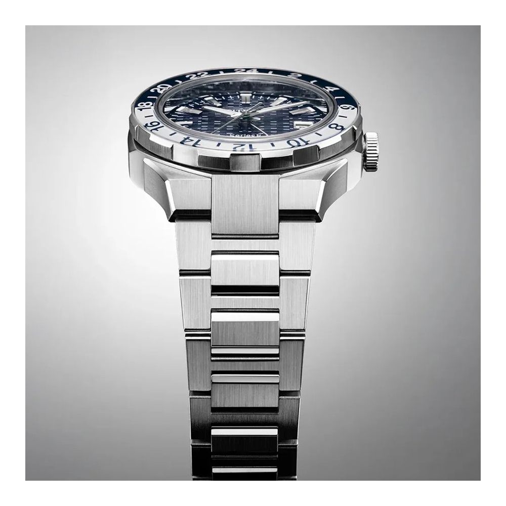 Bisel de aço bidirecional com “click feeling” com aro de registo bicor de cristal.