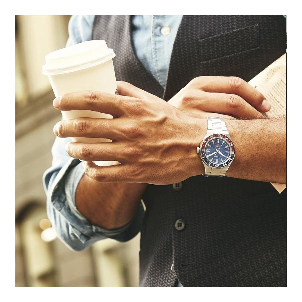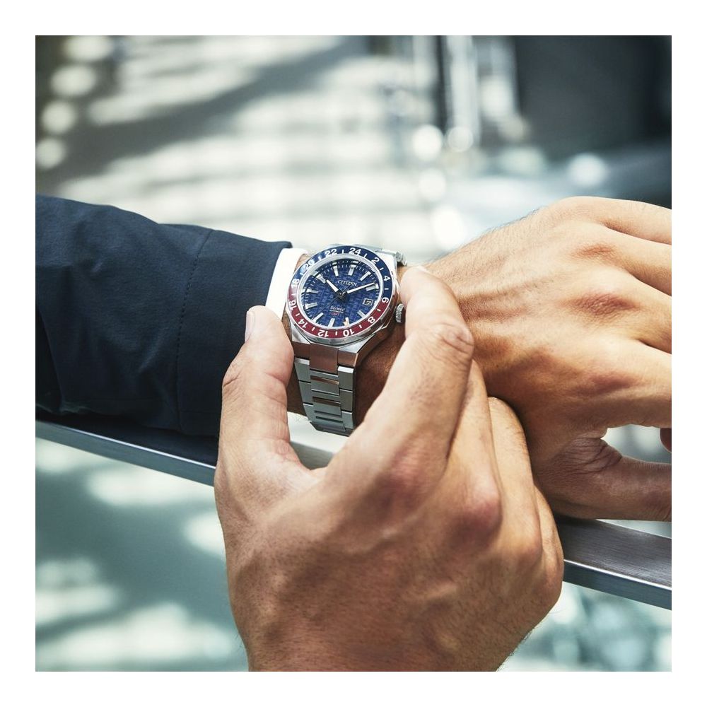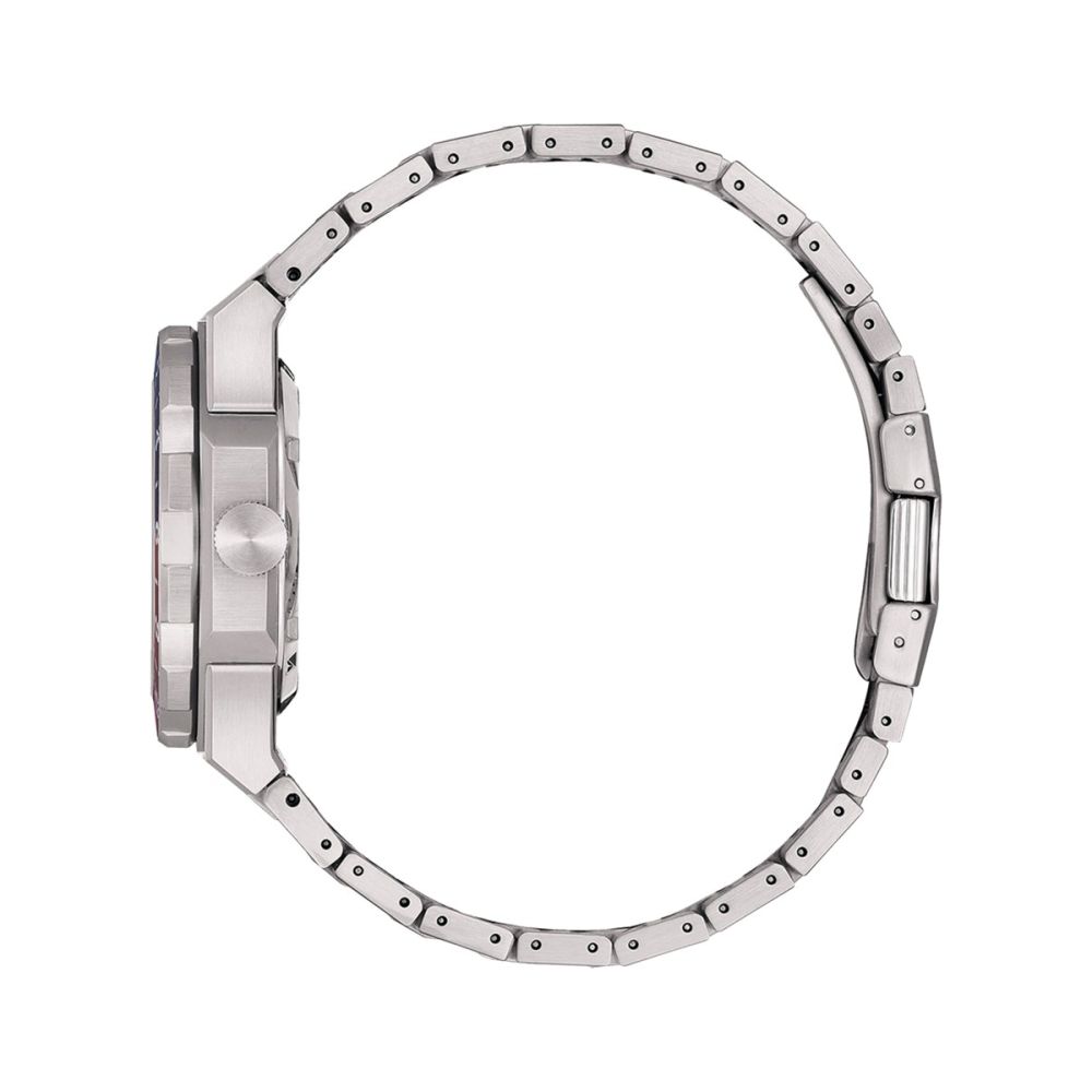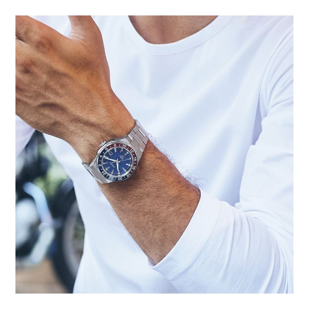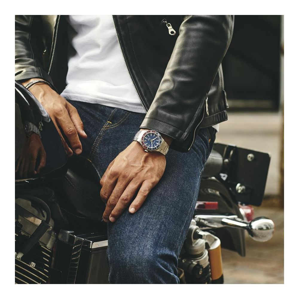 Caixa com diâmetro aproximado de 41 mm, mostrador cor azul e bracelete prateada e caixa cor azul e vermelha. Está equipado com um movimento automático. O relógio é estanque até 100 m | 10 bar | 10 atm. Composição: aço, safira.