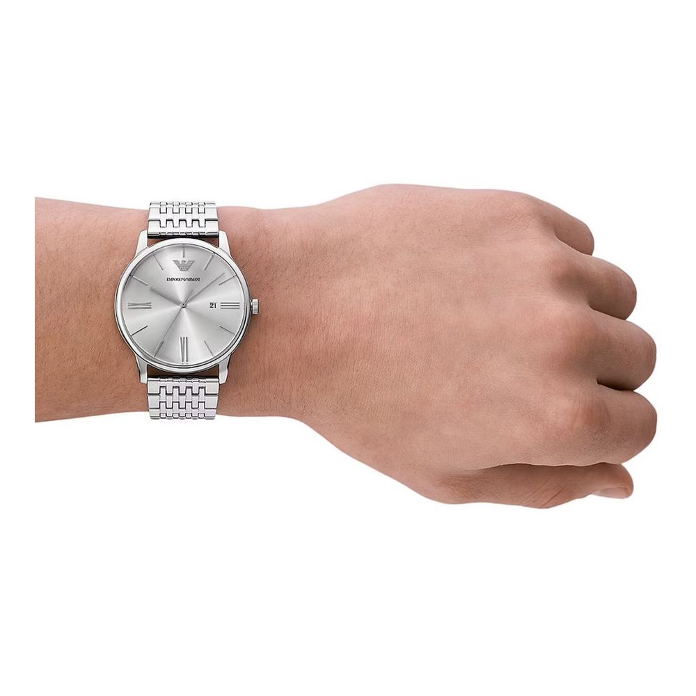 Relógio Emporio Armani Minimalist AR11599. Este relógio Emporio Armani tem uma caixa com diâmetro aproximado de 42 mm, cor prateada e bracelete cor prateada. Está equipado com um movimento quartzo. O relógio é estanque até 50 m | 5 bar | 5 atm. Composição: aço.