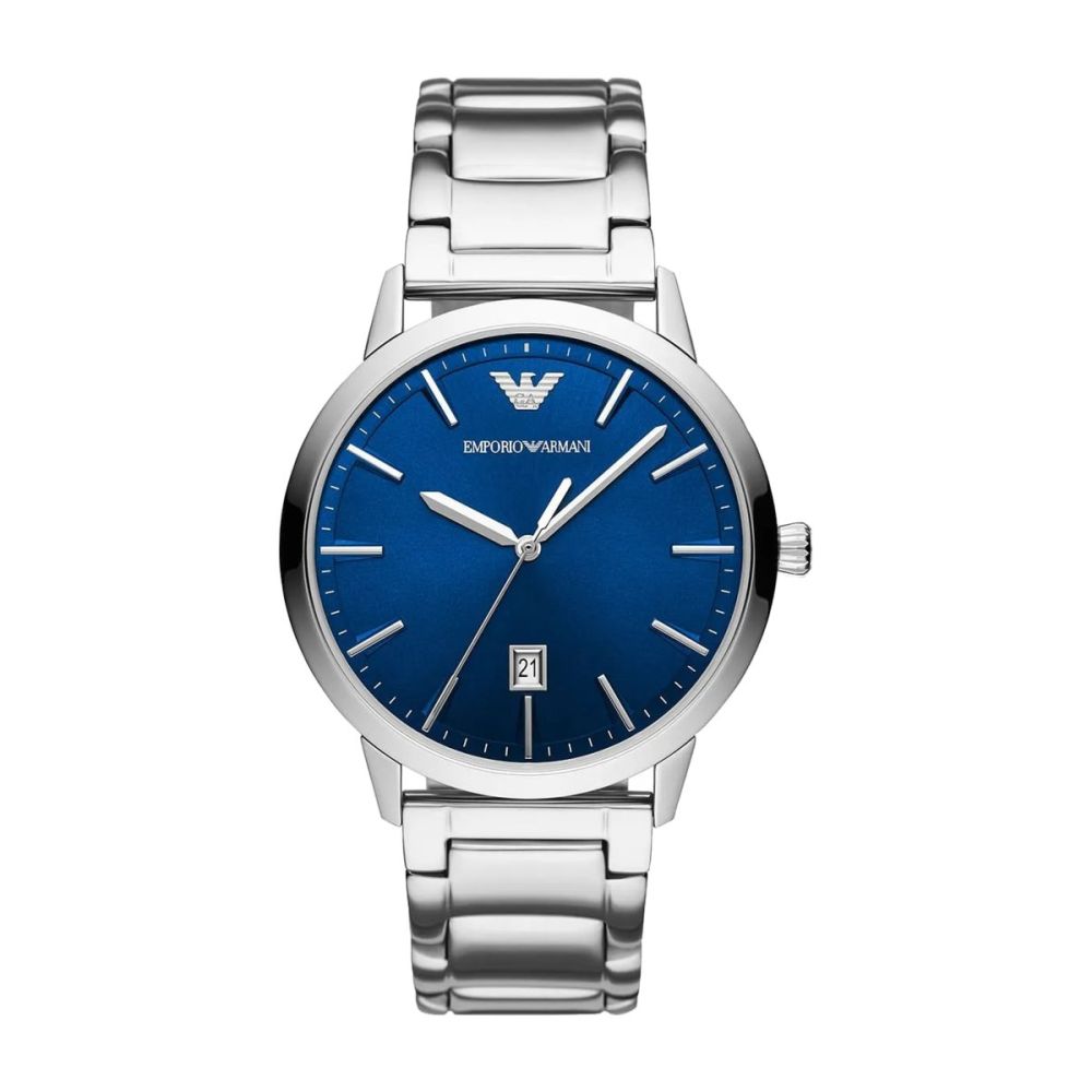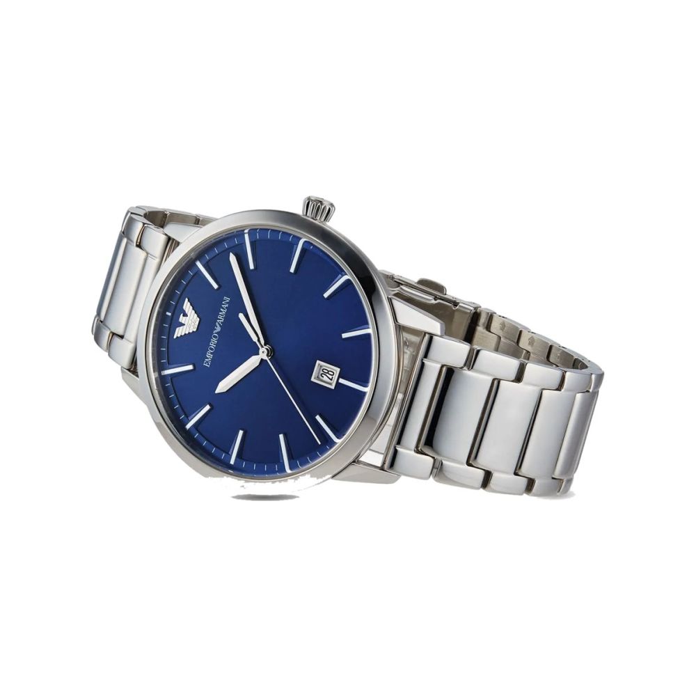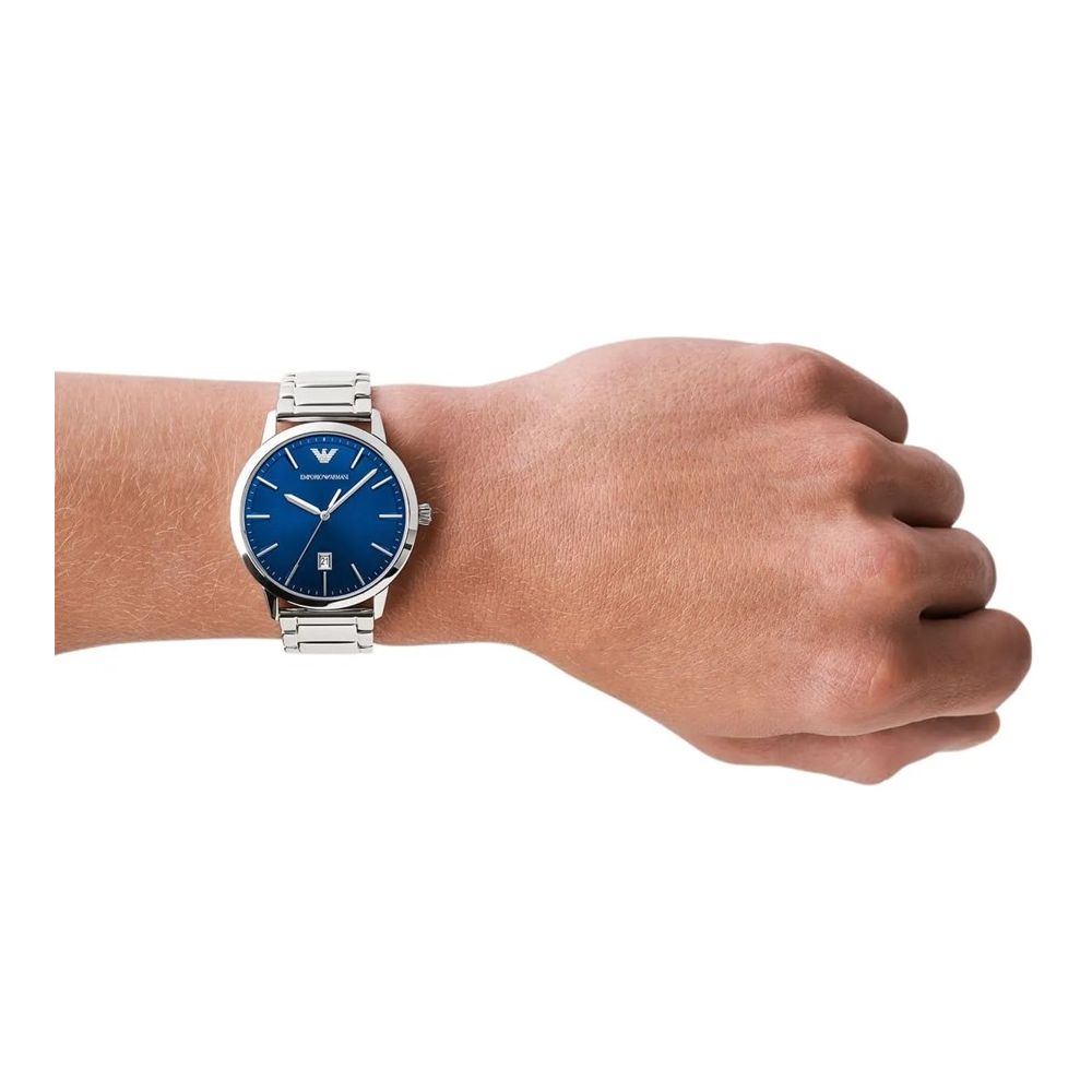 Relógio Emporio Armani Ruggero AR11311. Este relógio Emporio Armani tem uma caixa com diâmetro aproximado de 43 mm, cor prateada, bracelete cor prateada e mostrador azul escuro. Está equipado com um movimento quartzo. O relógio é estanque até 50 m | 5 bar | 5 atm. Composição: aço.