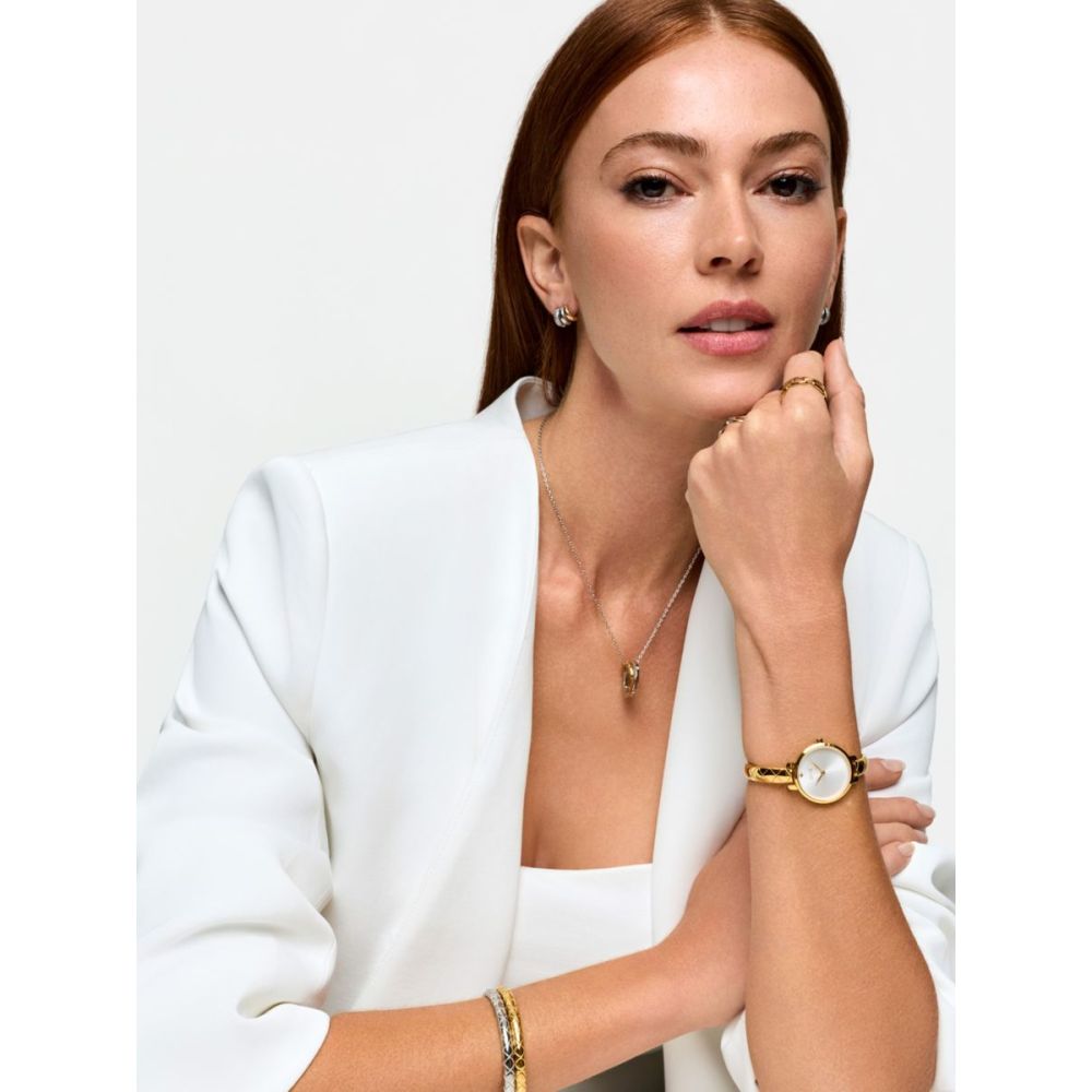 O Relógio Delightful distingue-se pelo seu design delicado e elegante, pensado para quem aprecia linhas simples e caixas de dimensões mais pequenas. A caixa redonda dourada envolve um mostrador em madrepérola, que reflete a luz de forma suave, destacando os dois ponteiros dourados e o logótipo ONE, garantindo uma leitura equilibrada e harmoniosa. A bracelete rígida dourada apresenta um padrão gravado em linhas cruzadas ao longo de toda a sua extensão, acrescentando textura. O seu design minimalista cria um elegante efeito de pulseira no pulso, assegurando conforto e leveza no uso diário. Feminino e versátil, o Relógio Delightful é ideal tanto para o dia a dia como para complementar looks mais elegantes, combinando simplicidade e atenção aos detalhes. Ideal para quem gosta de relógios elegantes, com um efeito de joia no pulso.