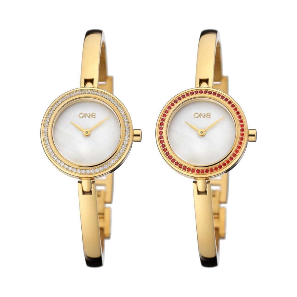 A Box Elegance é limitada e muito exclusiva! Foi criada para quem procura um relógio feminino, versátil e fácil de adaptar a diferentes estilos. Inspirada num design clássico e intemporal, esta box é composta por um relógio dourado com caixa pequena e redonda. O relógio apresenta um mostrador em madrepérola, que reflete a luz de forma suave, com dois ponteiros em dourado e o logótipo ONE, mantendo uma estética elegante. A bracelete rígida dourada tem um design minimalista, funcionando como uma pulseira no pulso e garantindo conforto no uso diário. A box inclui seis aros intercambiáveis que permitem transformar o visual do relógio de forma simples e rápida. Os diferentes aros apresentam acabamentos e cores distintas, criando estilos variados para adaptar o relógio a diferentes momentos e ocasiões. A troca dos aros é feita através de um sistema prático, bastando rodar a peça no topo da caixa do relógio. A Box Elegance é um verdadeiro 6 em 1, onde um único relógio dá origem a seis looks diferentes, do mais discreto ao mais marcante. Uma escolha versátil e sofisticada, ideal para quem gosta de variar o estilo com facilidade e elegância.