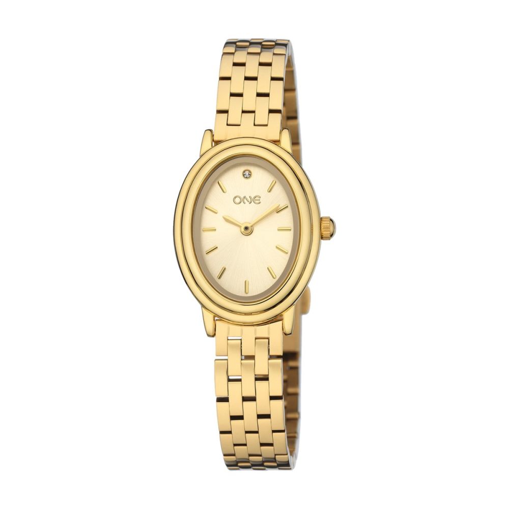 Os ponteiros também dourados mantêm a estética monocromática e refinada, enquanto a marcação das horas é feita através de traços minimalistas, com um toque especial: um cristal zircónico branco posicionado no topo do mostrador, logo acima da inscrição One, que acrescenta brilho e exclusividade à peça.