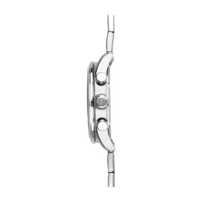Está equipado com um movimento quartzo. O relógio é estanque até 50 m | 5 bar | 5 atm. Composição: aço
