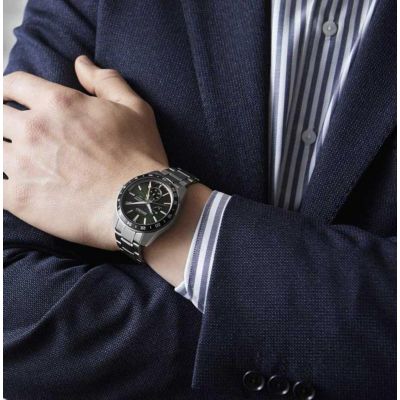 Caixa com diâmetro aproximado de 42 mm, mostrador cor verde com apontamentos cor preta, caixa cor prateada e bracelete cor prateada. Está equipado com um movimento automático. O relógio é estanque até 100 m | 10 bar | 10 atm. Composição: aço e safira.