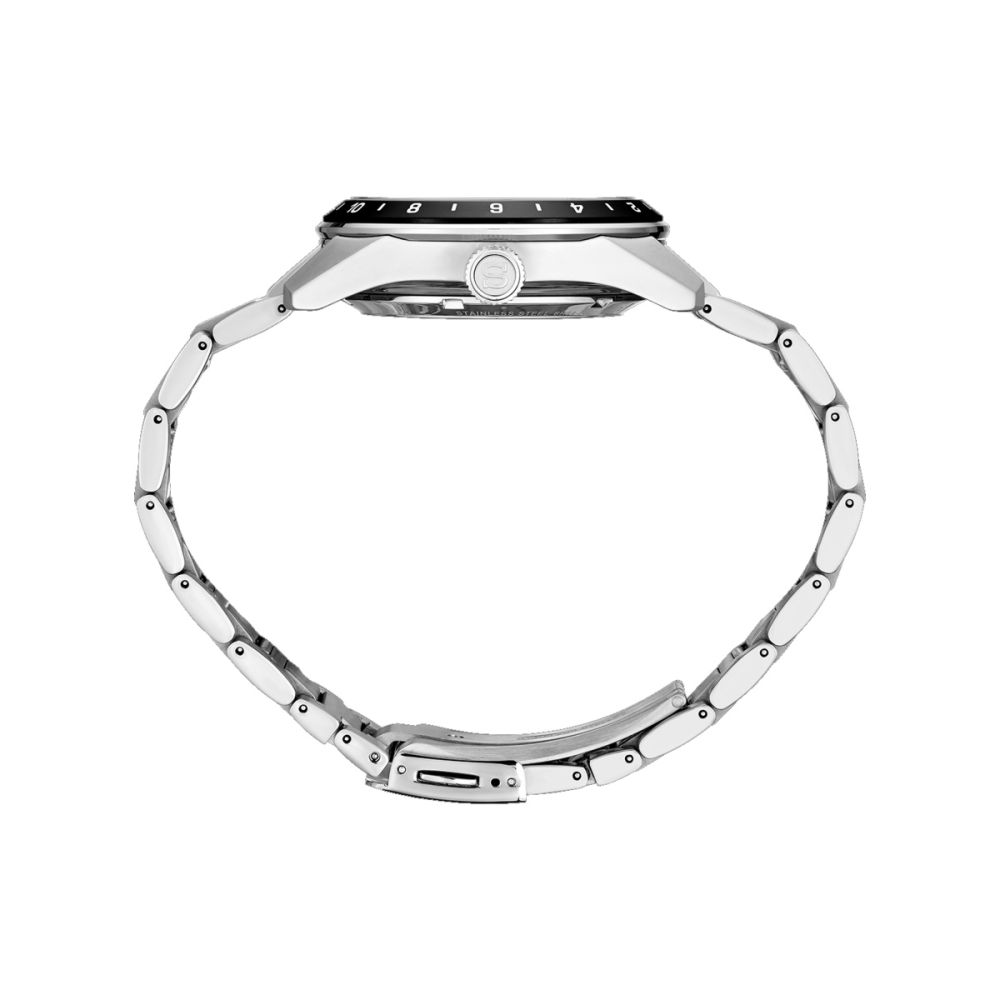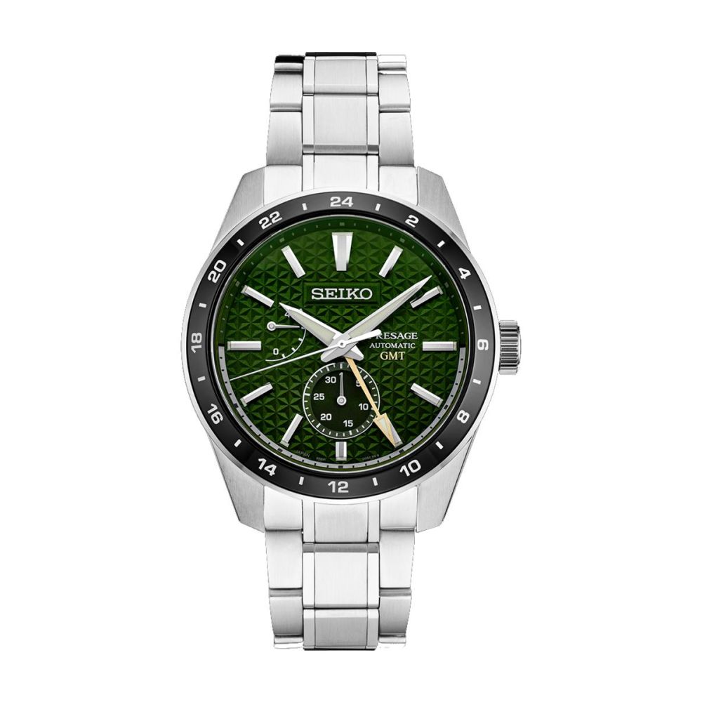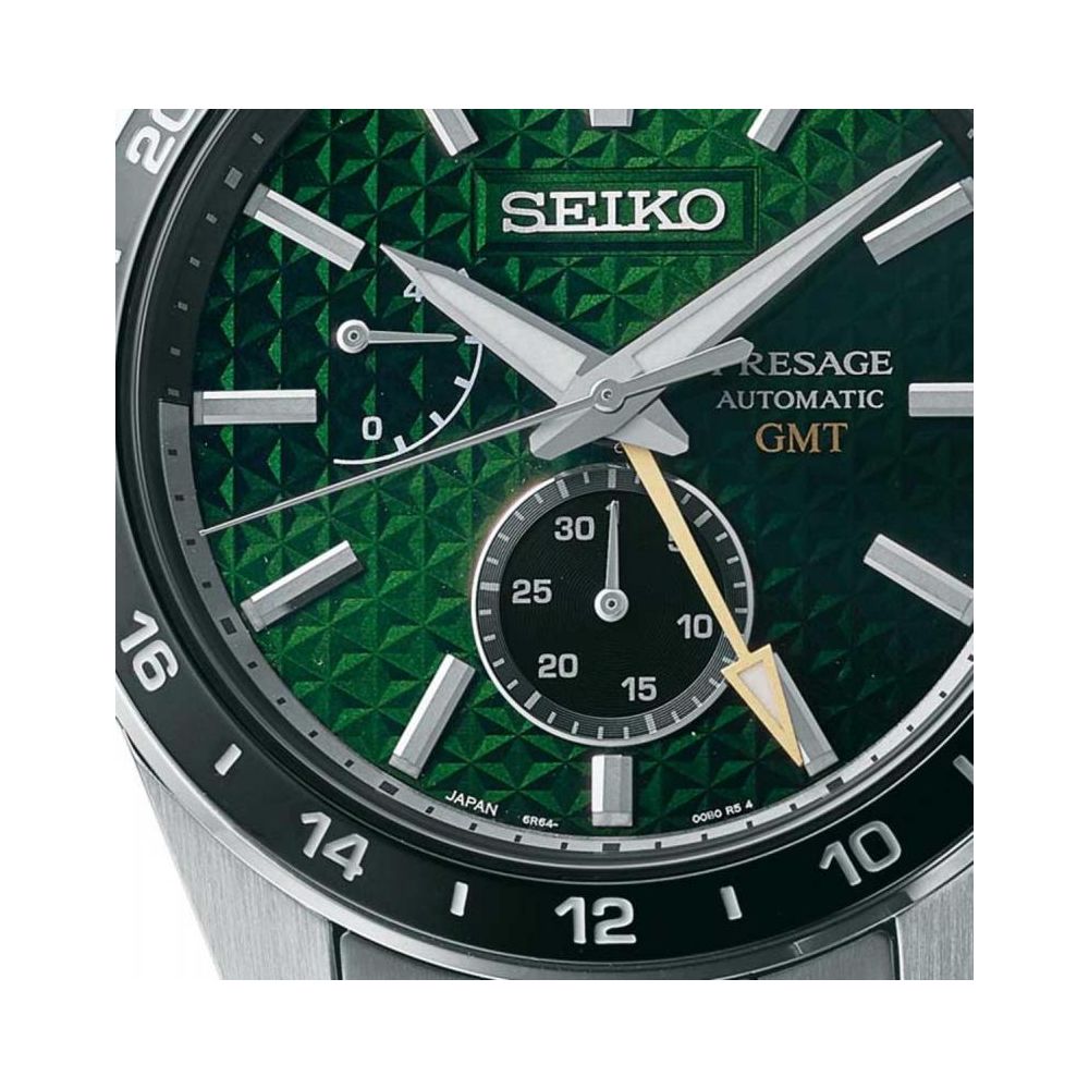 A série Seiko Presage Sharp Edged capta a simplicidade e o requinte da estética tradicional japonesa através do seu mostrador delicadamente texturado, dando-lhe um toque de modernidade com a construção aguçada e angular da caixa. O perfil é nítido. As linhas são fortes. As superfícies são angulares. A bracelete foi redesenhada para criar uma definição multidimensional que combina com o dinamismo da caixa, e as asas terminam num corte angular para realçar a modernidade do design. O próprio ponteiro GMT apresenta contornos fortes e definidos em linha com a forma angular da caixa. O padrão geométrico tradicional japonês, chamado Asanoha, oferece um elemento de mudança constante à medida que reflete a luz de diferentes ângulos. O mostrador é numa cor tradicional japonesa, Tokiwa, a cor das árvores de folha perene.