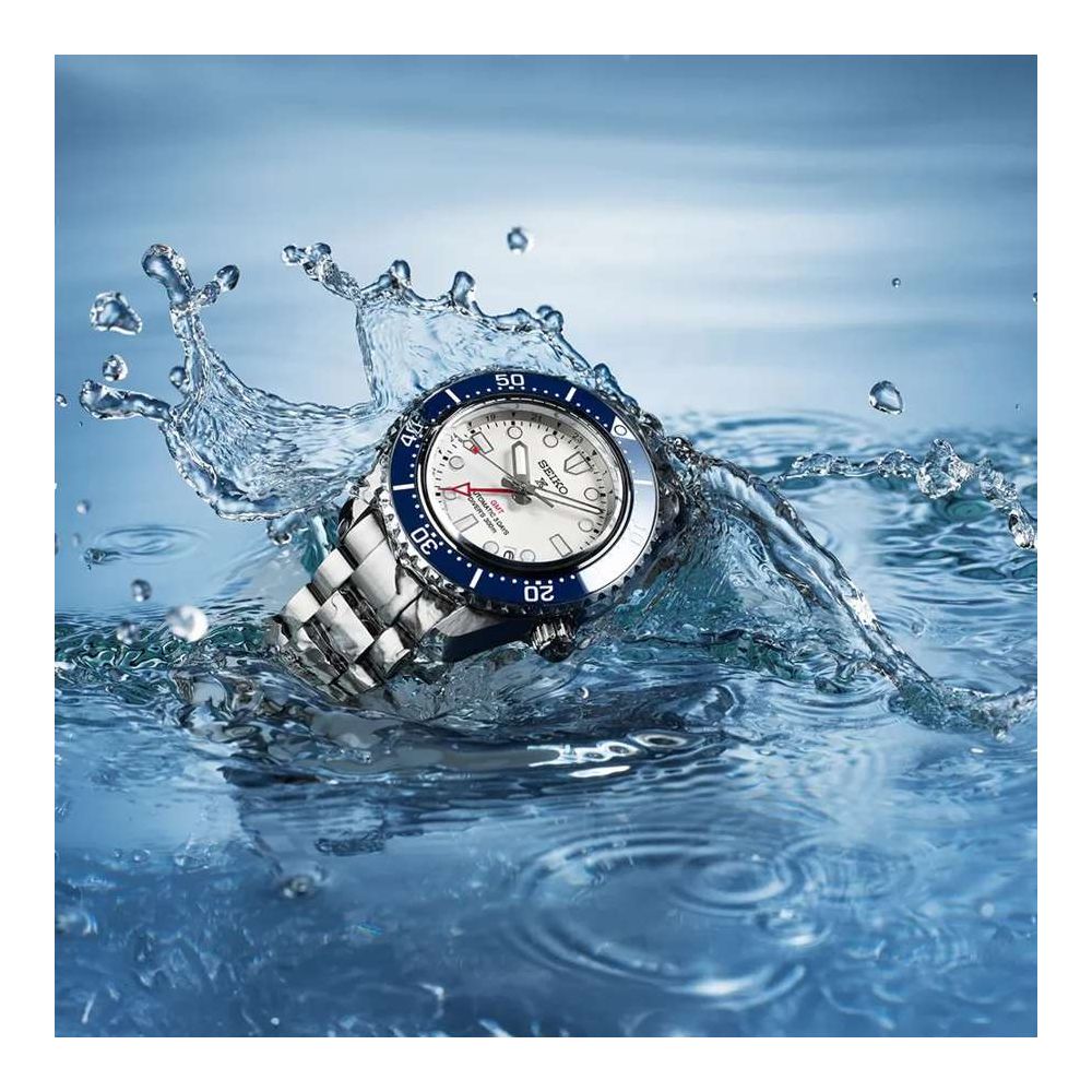 Inspirado pelo desporto marítimo, o relógio tem um bisel cerâmico azul e um mostrador branco-prateado, para criar uma estética fresca e límpida.