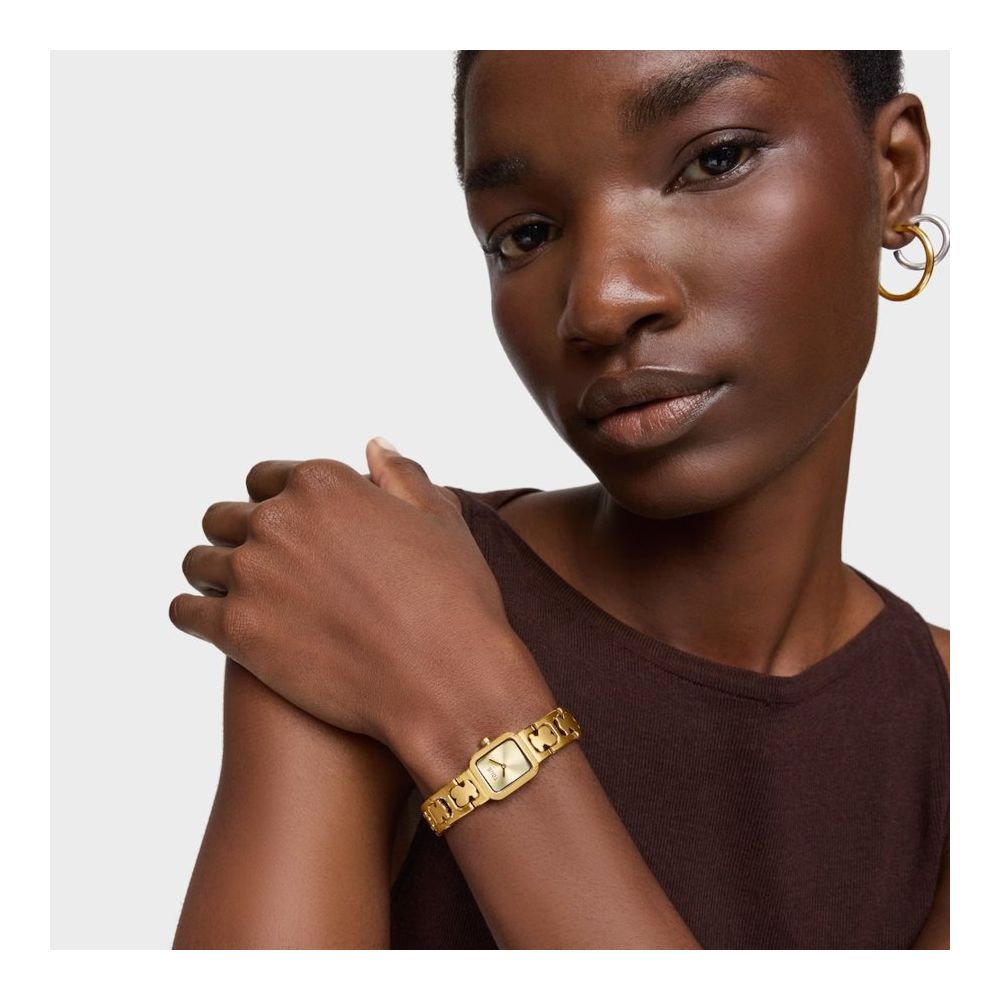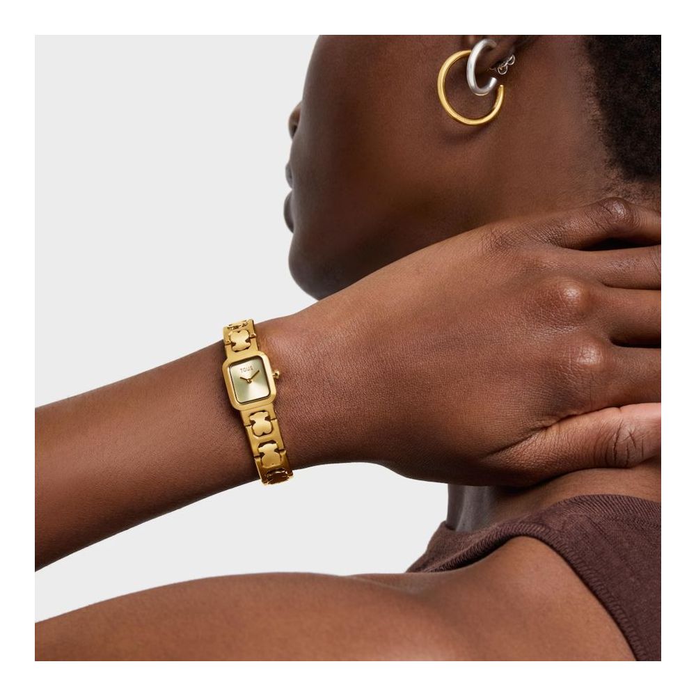 Relógio analógico TOUS Icon Time com bracelete em aço dourado com motivos de urso. Dimensões: 21,7 mm x 16,2 mm.