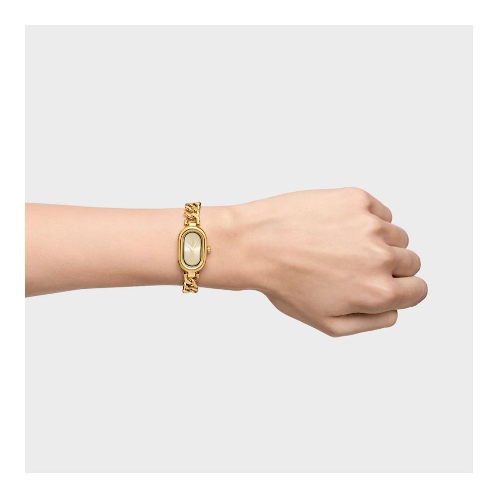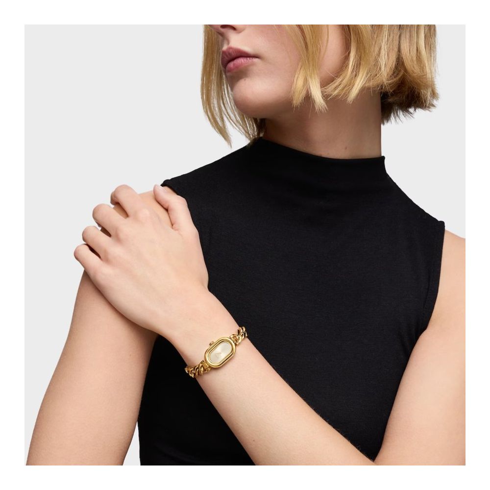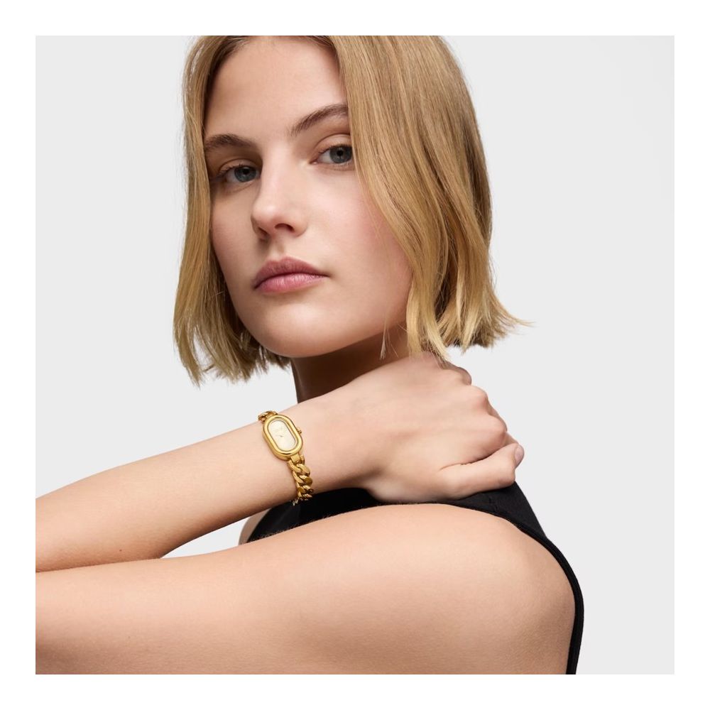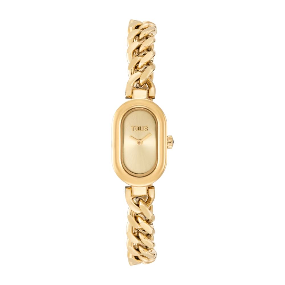 Relógio analógico joia TOUS Oval Time com bracelete de corrente e caixa em aço inoxidável dourado.
